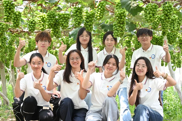 (图为实践团成员在阳光玫瑰葡萄园的合影。陈一鹏摄)