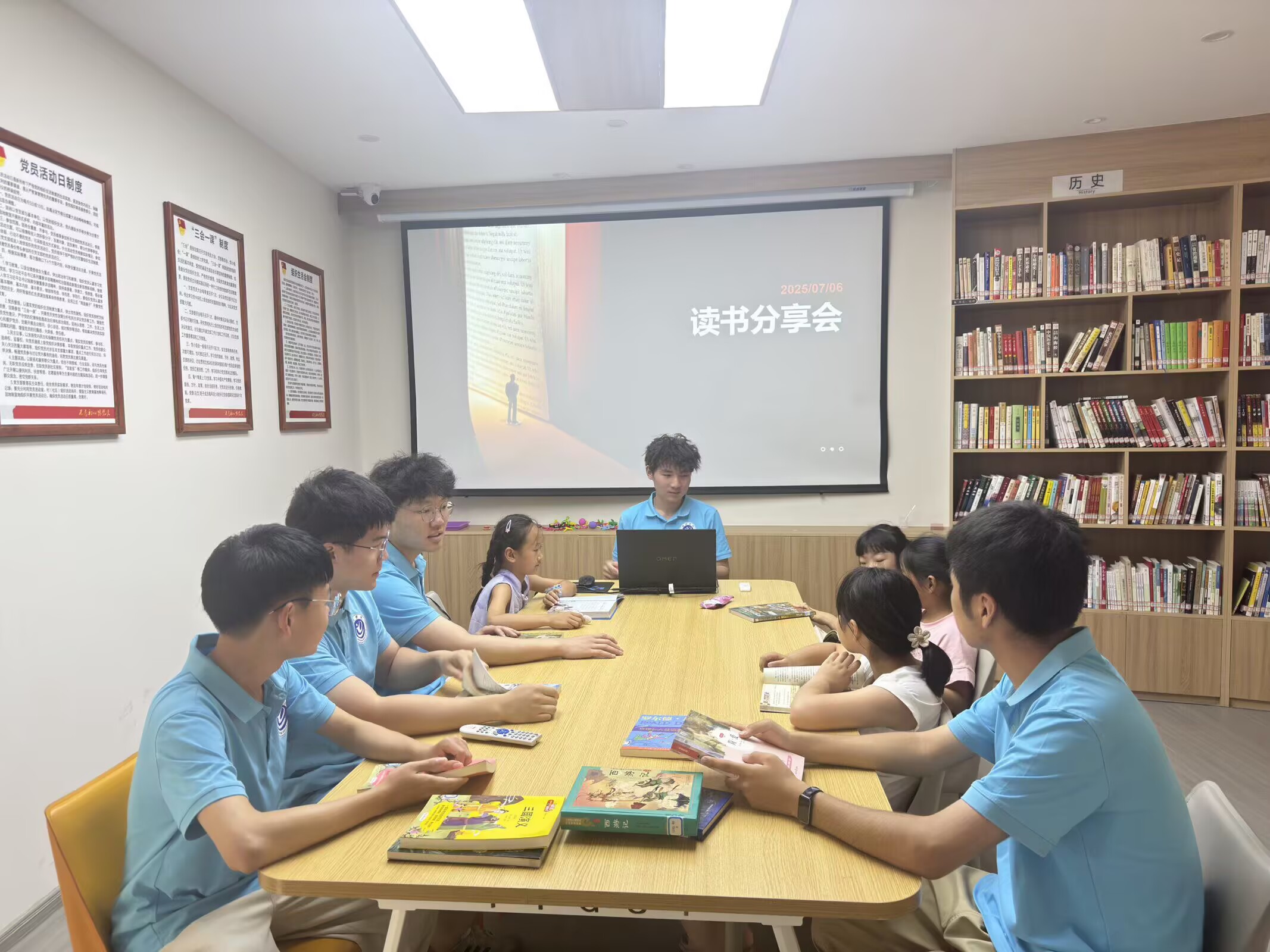 队服上“科学启蒙,青年同行”的字样,此刻不仅映照着书页,也映衬着孩子们或托着小脸蛋入神聆听、或兴奋地举手发言、或自豪分享后的灿烂笑脸。知识的浸润、想象的飞扬与交流的温暖在此刻流淌交融。实践团成员表示,此次读书分享会既是为孩子们打开视野、启迪智慧的一扇窗,也是培养良好阅读习惯、点亮心中求知火种的一次温馨播种。他们希望通过这种互动性强的活动,让孩子们感受阅读的魅力,体验分享的乐趣,明白书籍是充满惊喜与力量的宝藏。让书香浸润童年,让悦读的习惯伴随成长,让思考和想象的种子在这片充满希望的童真土壤中悄然萌芽、蓬勃生长。