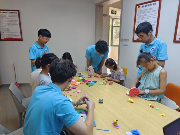 活动现场洋溢轻松艺术氛围。孩子们用五彩黏土揉、搓、捏、压,创作出憨态可掬的小动物、色彩梦幻的城堡等作品,还巧妙结合闪片、小珠子等材料。志愿者悉心引导,鼓励观察想象、动手实践,陪伴孩子们展示作品,在愉悦中锻炼专注力与精细动作能力。