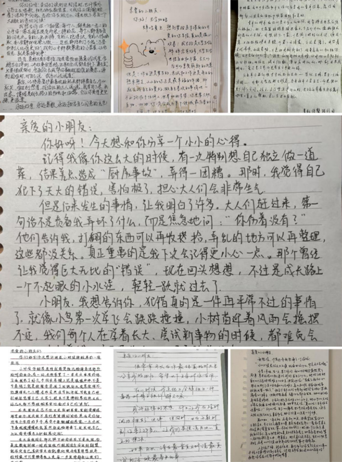设”心理信箱“,团队成员化身树洞回信,深入孩子们的内心,以温柔字句抚平皱巴巴的心,让心芽悄悄向阳拔节。