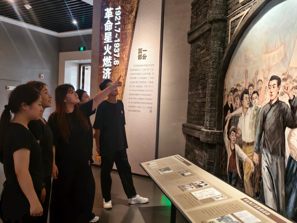 实践团成员参观济宁革命军事馆学生工人革命运动油画