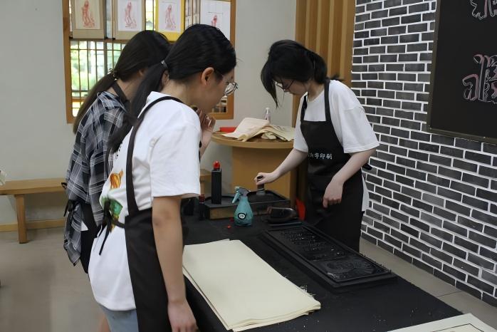 图4:实践队队员尝试木活字印刷术 胡婧琳通讯员摄