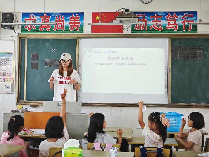 蒙自点位 20 名志愿者为 165 名学生设计 308 课时 “沉浸式课堂”。他们带着孩子们来到稻田边,讲解水稻与杂草、害虫与益虫之间的关系,让孩子们明白生态平衡的重要性。在美食文化课上,志愿者们从水稻讲到米饭,从玉米讲到爆米花,让孩子们了解家乡美食背后的故事。实验室里,志愿者们带领孩子们做环保小实验,比如用废报纸制作再生纸,用小苏打和白醋模拟火山喷发了解化学反应。通过这些实验,孩子们明白了垃圾分类和资源回收的意义,并一起讨论出适合乡村的垃圾分类方案,如用不同颜色的垃圾桶区分可回收物和不可回收物,让科学精神真正扎根乡土。