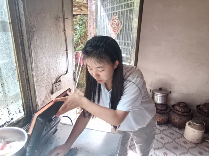 图为队员张欣在留守儿童家打扫厨房卫生。朱坐宇 供图
