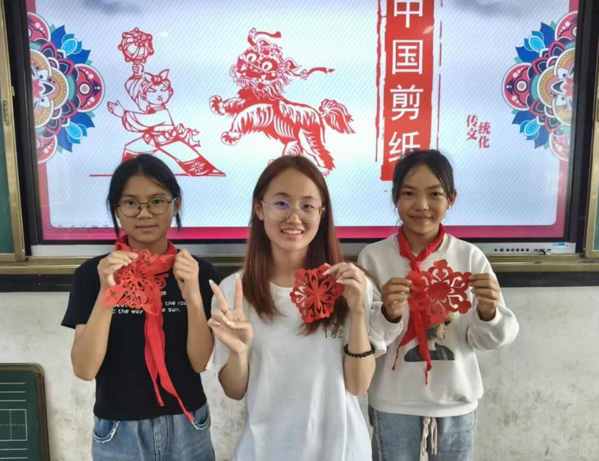良的活动以“民俗与经典交融”为核心,让青少年在沉浸式体验中触摸文化温度。志愿者们首先邀请当地非遗传承人带领学生学跳彝族舞蹈,孩子们跟着明快的节奏,摆动着象征丰收的手势,在旋转跳跃中感受彝族“火把节”所传递的热情与团结。“春分麦起身,一刻值千金”,在“二十四节气课堂”上,志愿者通过动画短片解析节气与农耕、生活的关联:从清明扫墓祭祖的孝道传承,到冬至吃汤圆的团圆寓意,一个个生动案例让抽象的时间智慧变得可知可感。诗歌鉴赏环节更成了“文化加油站”,志愿者以李白的《静夜思》为引,讲解“月亮意象”的思乡内涵,随后鼓励孩子们提笔创作,稚嫩的诗句里,藏着传统文化浸润的诗意。此外,“全球文化多样性”分享课上,志愿者对比彝族刺绣与墨西哥刺绣的异同,引导学生理解“各美其美,美美与共”的包容理念。