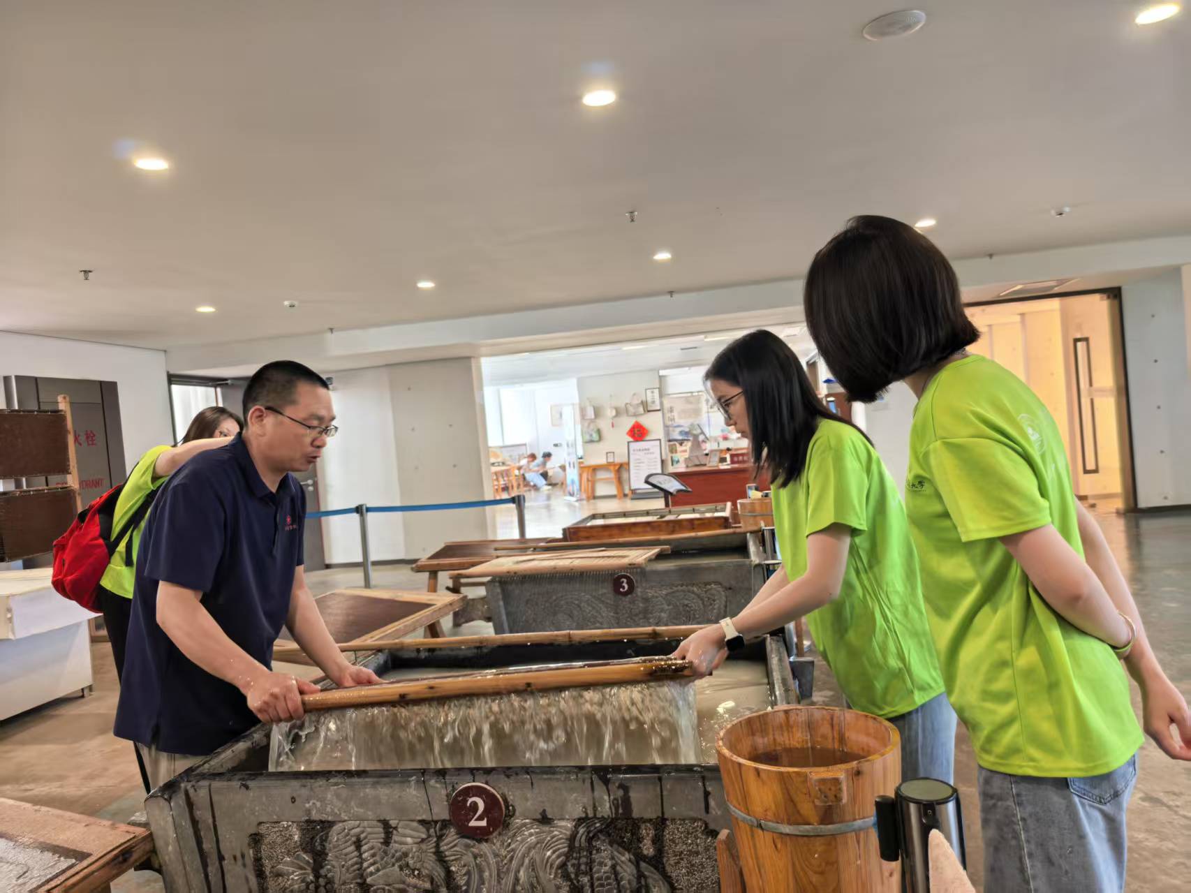 千年文脉的传承密码,藏于一方宣纸的匠心淬炼之中。从原料采集到制成成纸,需经108道工序,都携带着手的温度和人的传承。在非遗传承人的指导下,在文化体验区,团队成员正在师傅的指导下体验“抄纸”这一环节——用竹制纸帘在捞纸池中反复捞、抄、荡,掌帘者手腕轻抖,辅助者默契配合,纸帘在捞纸池中划出优美弧线,万千纤维如丝如缕交织成章。纸浆化宣,薄如蝉翼,不仅是技艺传承,更是一个民族对文化根脉的守护。每一道工序镌刻匠心,每一张宣纸承载文明,这正是中华文化生生不息的力量。