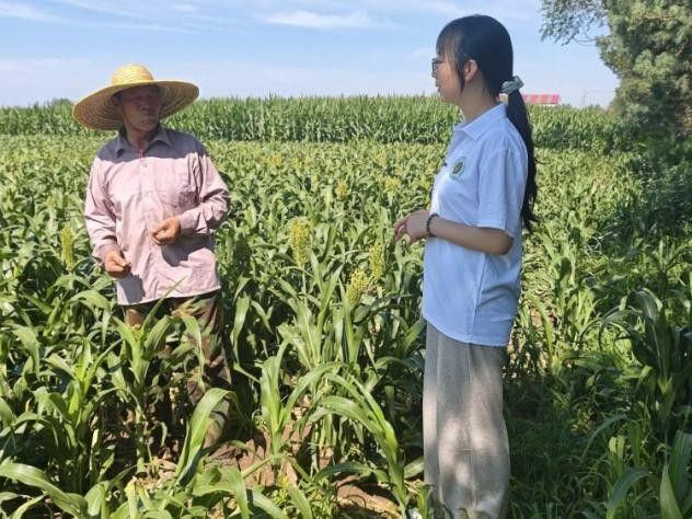 为更精准地把握当地需求,团队分组走访兴十四村农户,与老一辈农民和当地青年展开面对面交流。团队成员与当地农民交流当地的农作物种植情况以及农作物售卖情况,结合自己的专业知识提出自己的看法。同时,团队成员深入田间,实地考察土地墒情与作物长势,采集灌溉水源样本,返校后对其开展检测分析。