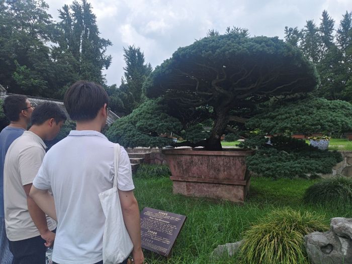 8月10日,在如皋市水绘园盆景园,团队成员们沉浸于“缩龙成寸”的自然大观。盆景大师以“一寸三弯”的鬼斧神工,雕琢着雀梅枝干的虬劲与灵动。学生们围聚学习,领悟枝干扭转间蕴含的微妙力学平衡艺术。“二十载寒暑,方能练就‘眼中有型、手中有度’的境界。”大师的话语点明了技艺的精髓。这份对空间结构与自然生命的精微把握,让机械学子们豁然开朗,领悟到顶尖技艺背后严谨的逻辑与深厚的积淀。
