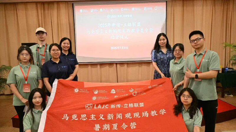 “立格铸魂·海南法传”爱国主义教育实践团于“新传-立格联盟”马克思主义新闻观实践教学夏令营结营仪式合影。活动主办方供图