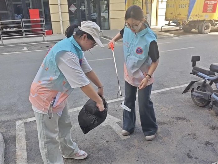 与此同时,另一部分实践团成员拿起扫帚、夹子等清洁工具,对社区周边的卫生死角、绿化带及道路两旁进行全面清理。经过几个小时的努力,社区周边环境焕然一新,变得更加整洁美观。