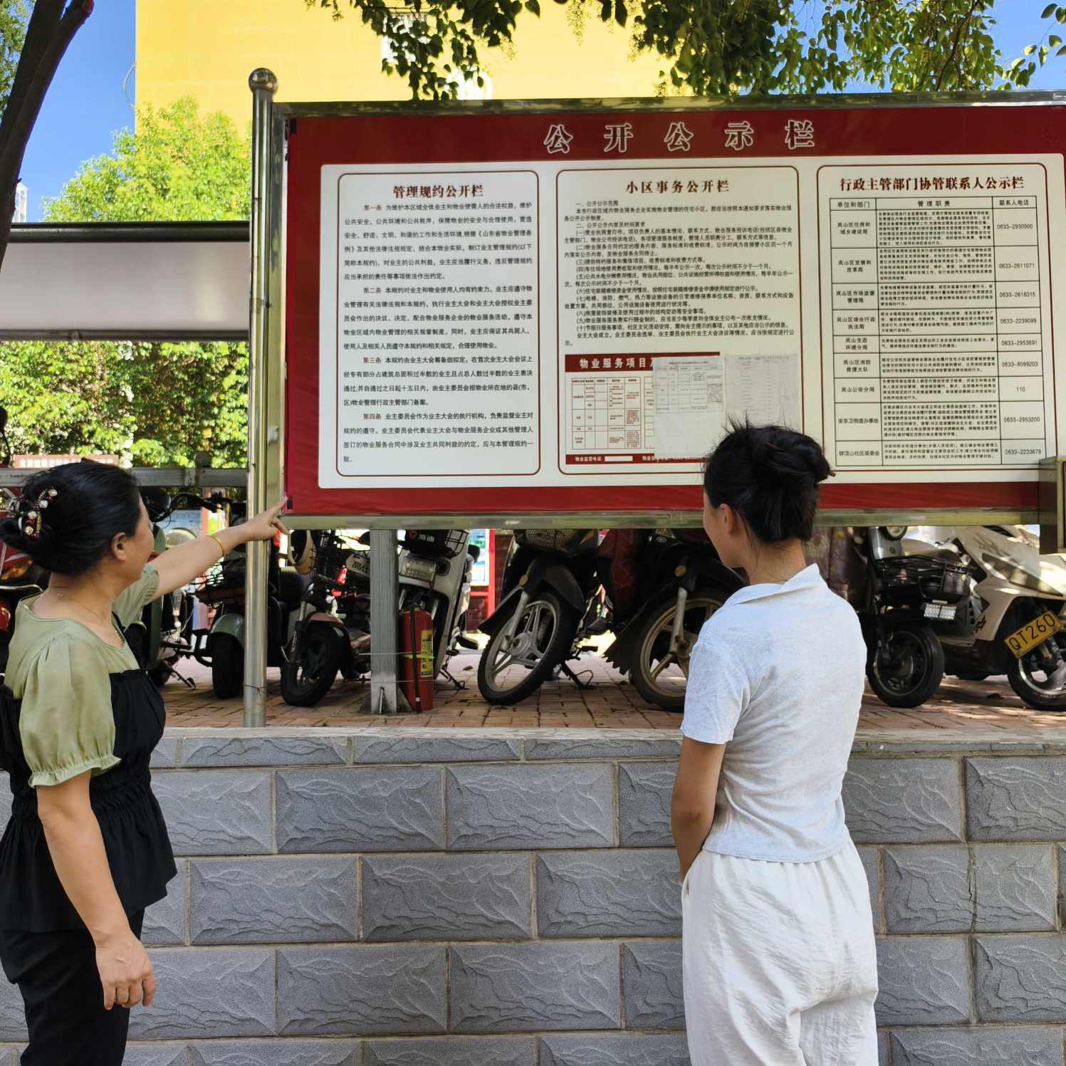 图2 日照市岚山区阿掖山花园社区干部向实践队员介绍廉洁公示制度