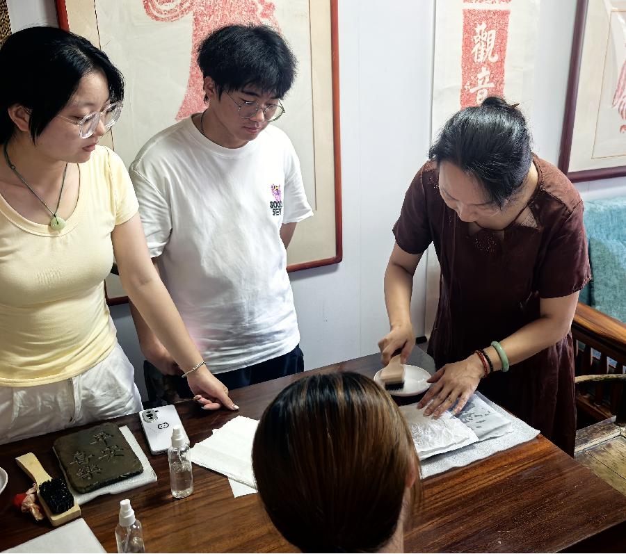 为深入挖掘非遗文化内涵,增强同学们对传统技艺的保护意识,2025年7月16日,淮北师范大学计算机科学与技术学院团委组织学生赴泰安市非遗传承基地开展拓印技艺学习活动,非遗传承人姜老师受邀为同学们提供全程指导。