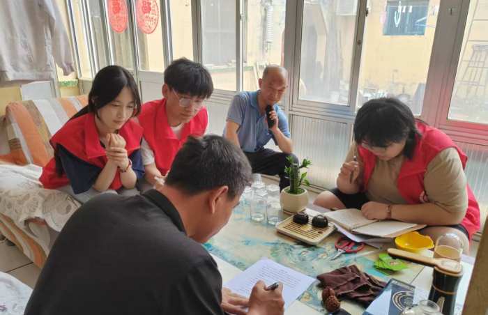 图为团队成员在农户家中进行土壤污染治理知识科普。王馨雅 供图