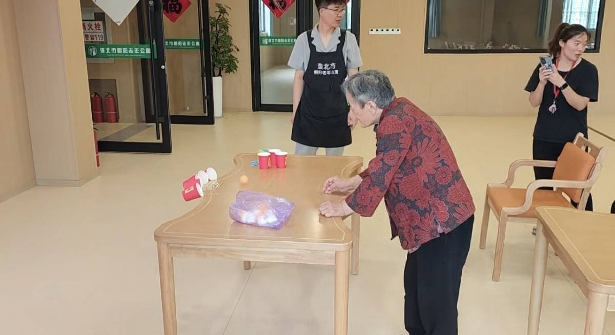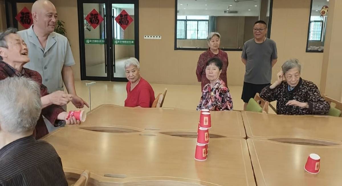 随后的小球入杯、剪纸等游戏,让老人们重拾童趣,70岁的张爷爷成功完成游戏后,像孩子般举起双手欢呼,场面令人动容。