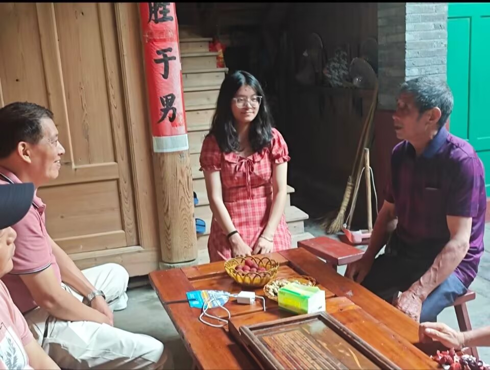 (左图为实践团成员与当地老人进行一系列交谈,右图为实践团成员帮助当地儿童了解政策)