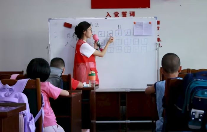 他们以热忱与专业,在这里种下知识与爱的种子,静待花开。教室里,文学诵读声朗朗入耳,书法课上笔墨飘香。志愿者们不仅是老师,更是引路人。他们用诗意的语言带孩子遨游文学海洋,从一笔一画中传递汉字之美。他们坚信“因材施教”,细心关注每一个孩子的独特性——用游戏激发活泼孩子的想象,用温柔鼓励内向的孩子开口,用耐心辅导帮助学习困难的孩子重拾信心。