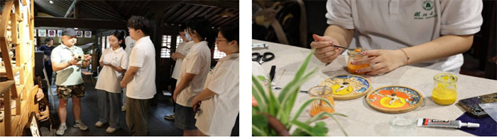 图7:队员参观掐丝珐琅作品 图8:队员在指导下体验掐丝制图步骤