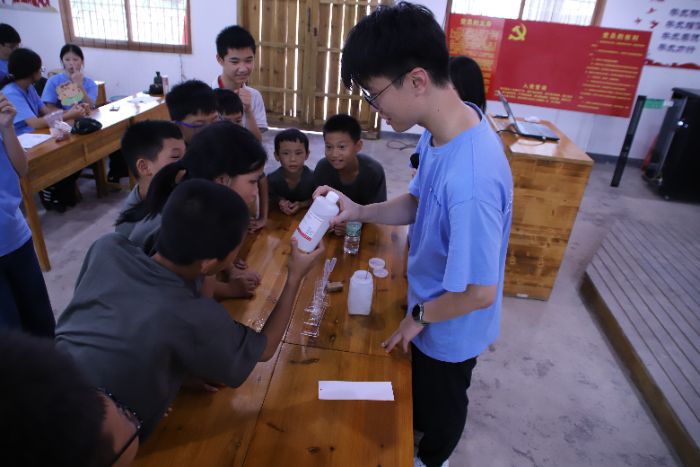 近日,江西省于都县禾丰镇麻芫村学校的课堂里,气氛格外不同。江西理工大学资源与环境工程学院“旷野·矿冶 励志·力智”暑期“三下乡”社会实践队的到来,为这里的孩子们带来了一场融合科学探索与红色传承的独特体验。
