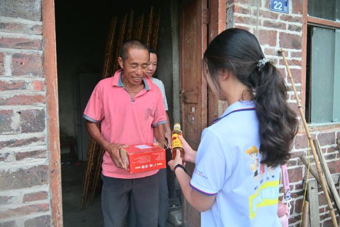 图9 2025年实践团成员向困难家庭送上生活必需品(心连壮瑶实践团摄)