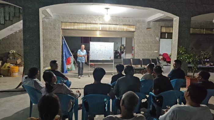 傍晚,借助张叔叔的人脉资源,实践队邀请到20左右余位村民参与普通话夜校课堂。张老师精心挑选“水井”“海子街”“咯吱窝”等与生活、地名、身体部位相关的词语,通过“实物展示+情景模拟”教学,村民们都很积极,尽管发音略带乡音,却赢得了全场掌声。