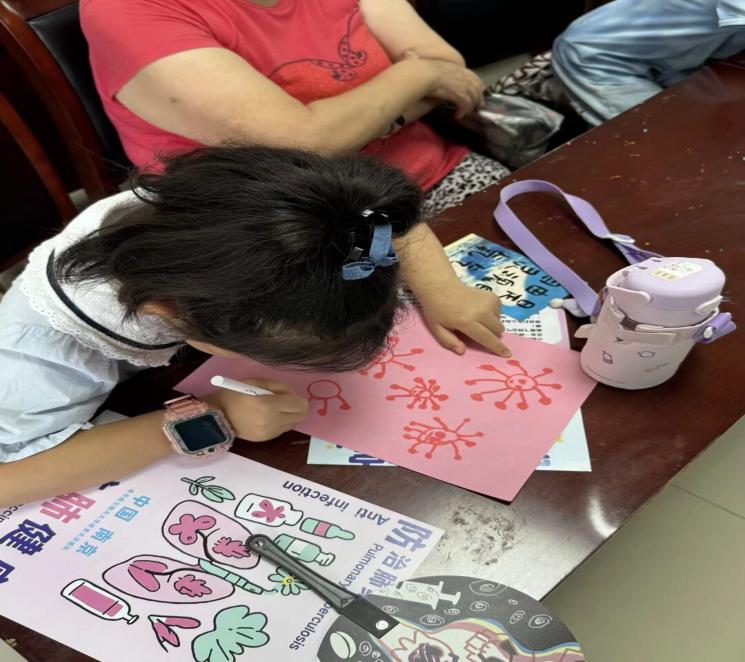 团队共由18名成员组成,他们根据前期的调查与准备,精心设计了活动流程和内容,包括肺结核防治知识讲解、防疫盲盒挑战、手工制作病毒与防治三件套等环节。这些活动既富有教育性,又充满趣味性,能够有效激发居民们对健康知识的兴趣。特别是小朋友们,通过粘土制作防治结核三件套、石膏娃娃涂色等互动环节,不仅学习了疾病防控知识,还锻炼了动手能力。