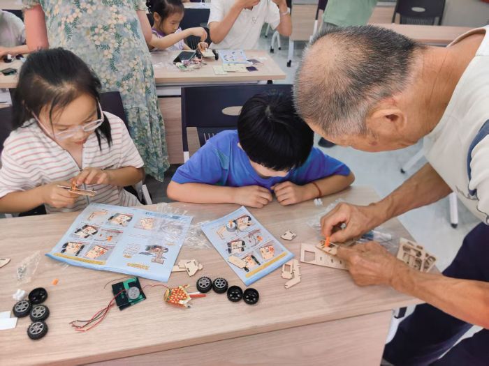 活动最后,社区负责人为每位小朋友分发了用再生木板制作的小汽车手工材料。孩子们与家长合作完成了环保主题的小汽车作品,每一个模型都承载着他们对绿色生活的理解。社区负责人在结束发言中表示,希望通过这样的活动,让环保理念深入人心,让孩子们不仅成为环保的倡导者,更成为行动的践行者。