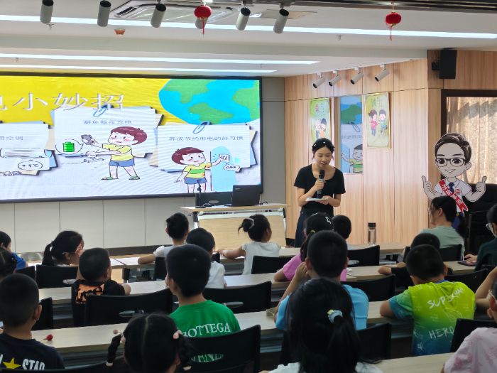 与此同时,孩子们热情地分享了现如今多种绿色发电方式,例如风力发电和太阳能发电。实践团队员进一步引导大家认识到,尽管这些方式更加环保,但在日常生活中节约用电才是每个人都能切实做到的“零碳行动”。随后,实践团队员分享了一些日常生活中的节电小妙招,比如随手关灯、合理使用空调、避免整夜充电等并耐心地为孩子们讲解其中的原理,同时鼓励他们积极补充自己的经验和想法。