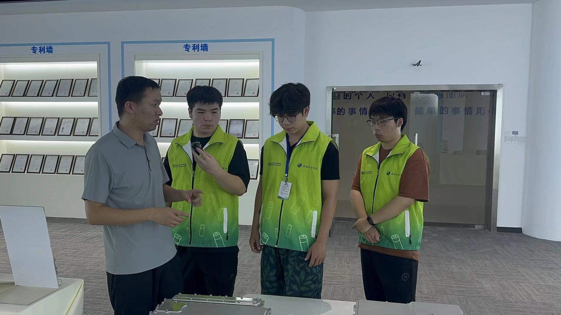 调研当天,6名队员按计划抵达企业,迅速进入工作状态。在企业技术负责人带领下,团队首先参观动力电池研发中心与生产车间。技术组紧盯电池pack生产线自动化设备,就能量密度测试、热管理模块布局与工程师深入交流,拍摄关键细节;产业组重点观察电池箱体材料标签与拆解接口,询问“易拆解设计如何平衡强度与回收效率”;综合组同步记录技术参数、拍摄环保处理环节,把控调研节奏。