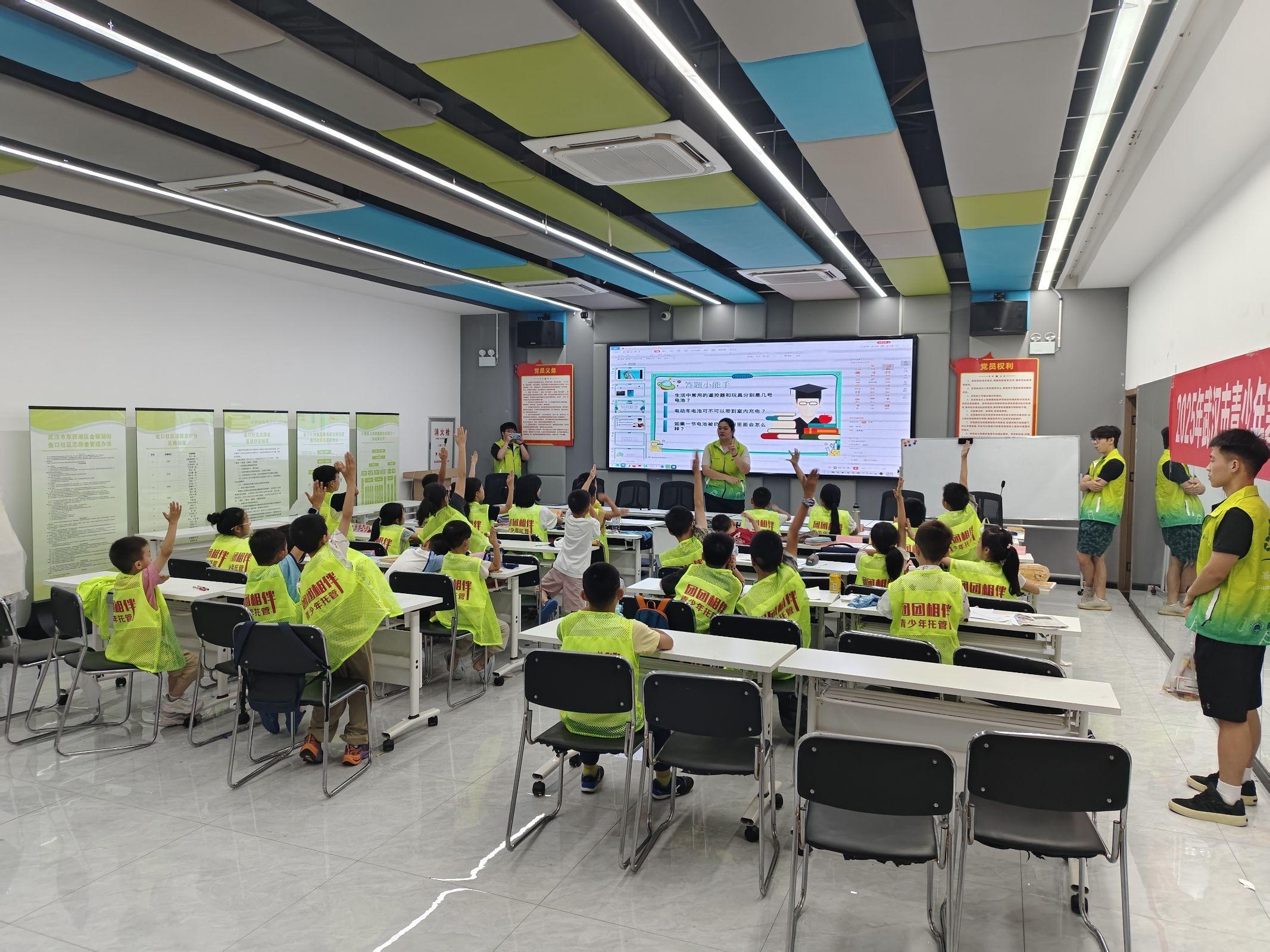 “源和”实践队由10余名不同专业的学生组成,团队始终秉持“同心协作、聚力前行”的理念,在八天实践中高效完成各项任务。从前期的活动策划、内容筹备,到现场的组织实施、应急保障,再到后期的总结梳理,每一个环节都体现着队员们的紧密配合与协同作战。其中,7月9日下午在武汉市金口社区开展的电池知识科普宣讲活动,成为团队展现协作能力、发挥专业价值的重要实践。