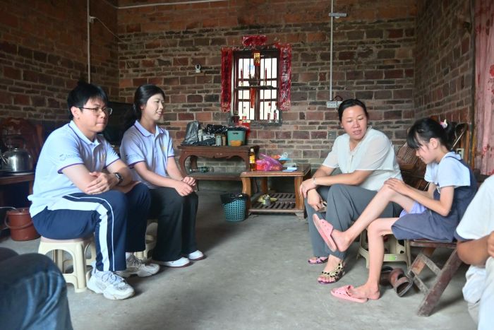 图6实践团成员和村委工作人员与困难家庭交流(丘文摄)