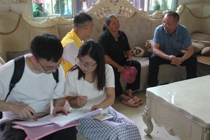 在工作队和村委的带领下,心连壮瑶实践团从生产、就业、教育、家庭收入、医疗保险等方面对脱贫监测户的基本情况进行详细调查,开展针对性帮扶行动,用专业与耐心解决人民群众的急难愁盼。