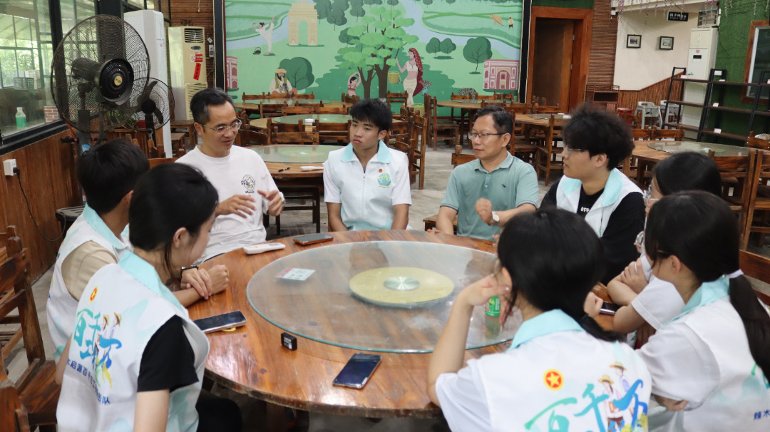 7月5日,“辣木启源”突击队的师生前往马冈镇红丰村,与村党总支书记、村委会主任梁日光会面,围绕辣木项目的推广与价值挖掘请教学习。