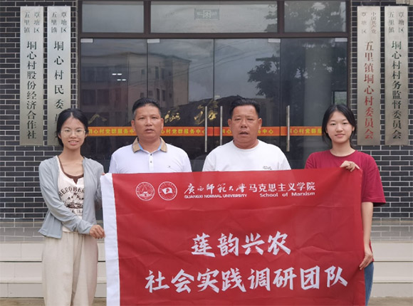 图为团队成员与垌心村村民委员会负责人合影韦水连供图