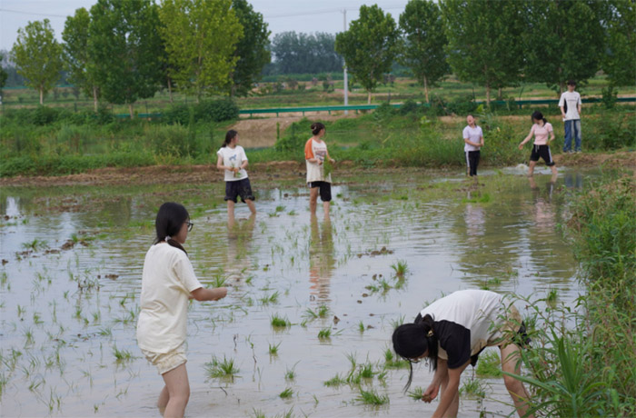 29日下午,情圆农场的水田里溅起一朵朵泥花。队员们卷起裤腿、脱鞋下田,泥浆没过脚踝,秧苗在指缝间挺立,一垄垄绿意倾泻在水田上。当最后一株秧苗稳稳立定,大家深刻感受到脚踏实地的力量,这是青年写给土地的论文标题,也是写给乡村振兴的“青春注脚”。