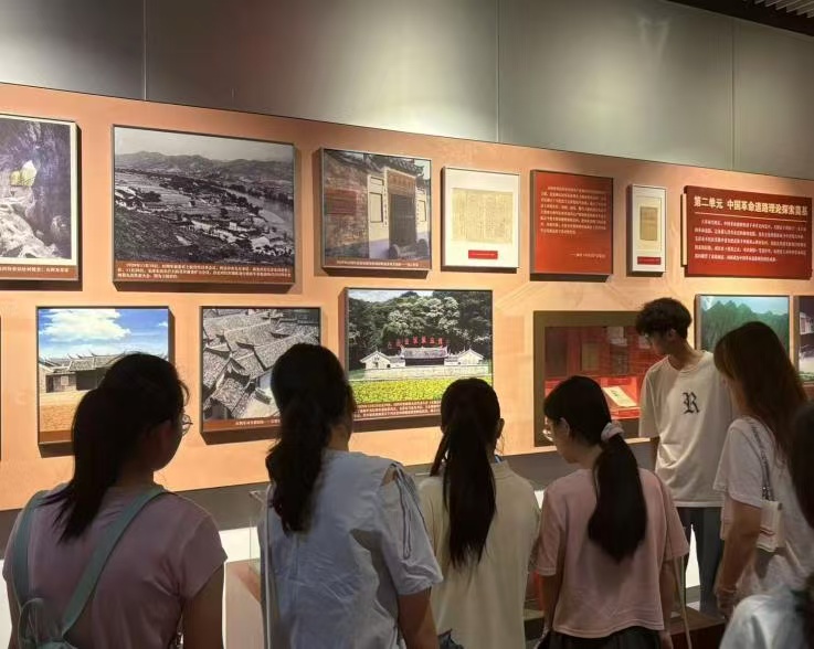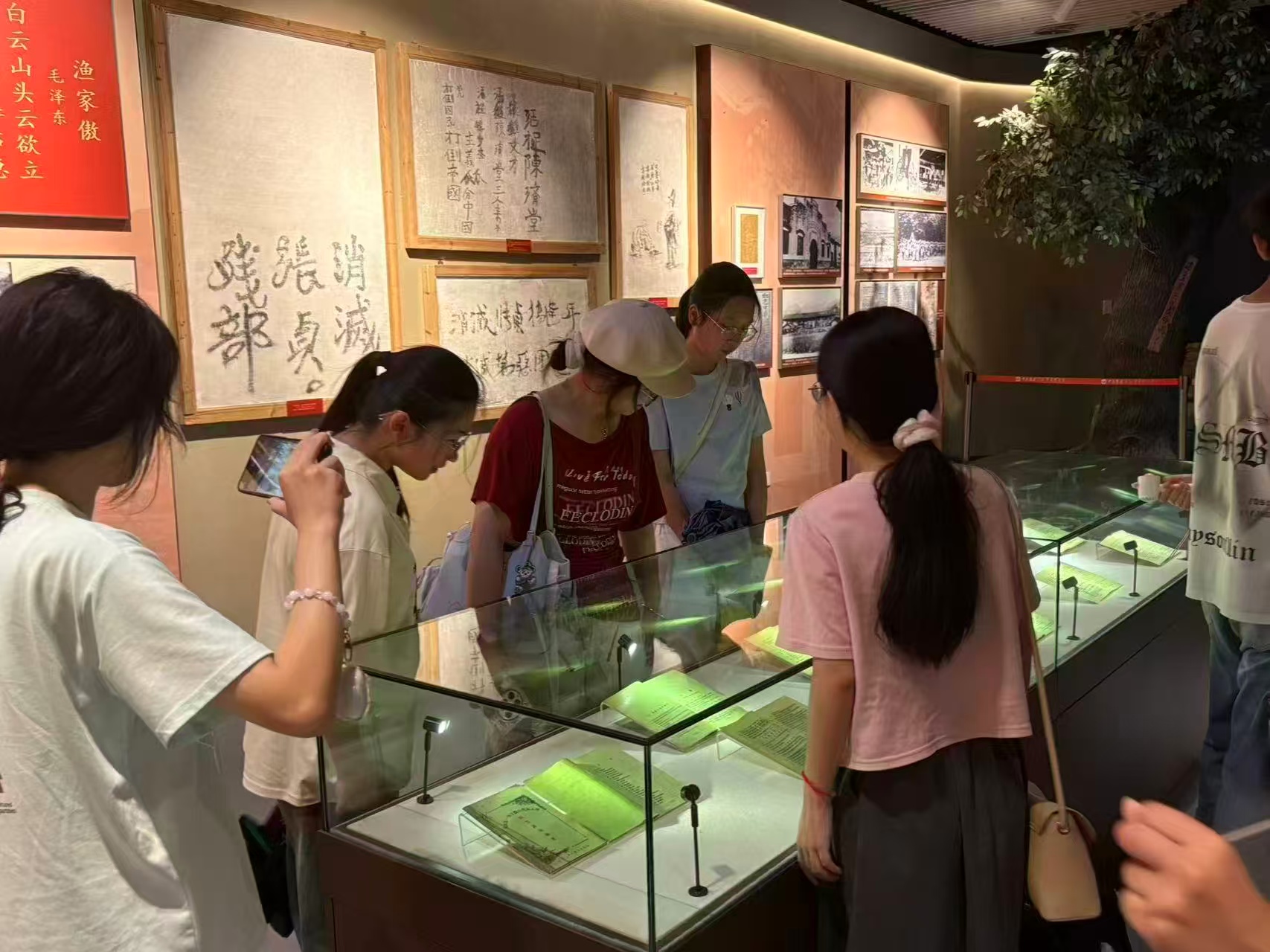 参观途中,实践团还围绕馆内珍贵展品开展交流研讨。《红色中华》报刊影印件上的鲜活文字、墙面留存的苏区时期宣传标语,都成为大家探讨的焦点。“打土豪、分田地”的通俗表述、“苏区干部好作风”的朗朗民谣,这些贴近群众、扎根生活的传播方式,让队员们深受启发——原来红色文化的传播,从来都不是生硬的宣讲,而是用群众听得懂、愿意听的语言,将精神力量融入日常。这份来自历史的传播智慧,也为当代弘扬红色精神提供了宝贵借鉴。