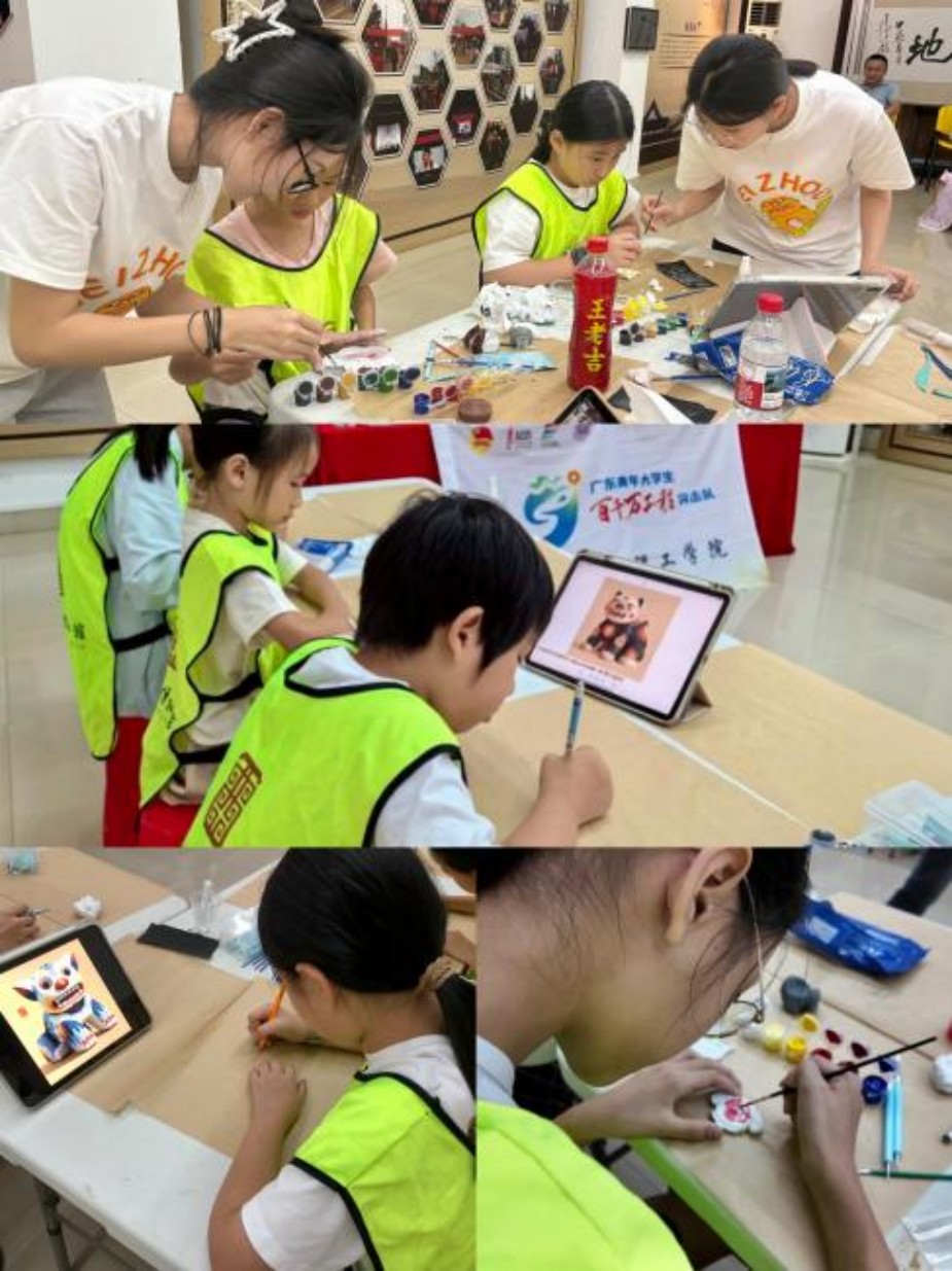 在文创设计之外,如何让非遗文化在更广阔群体中生根发芽,特别是激发青少年兴趣,成为突击队思考的另一个重要课题。为此,突击队在雷州市博物馆成功举办了“泥趣雷州·‘塑’说石狗”非遗文化手工体验日活动。