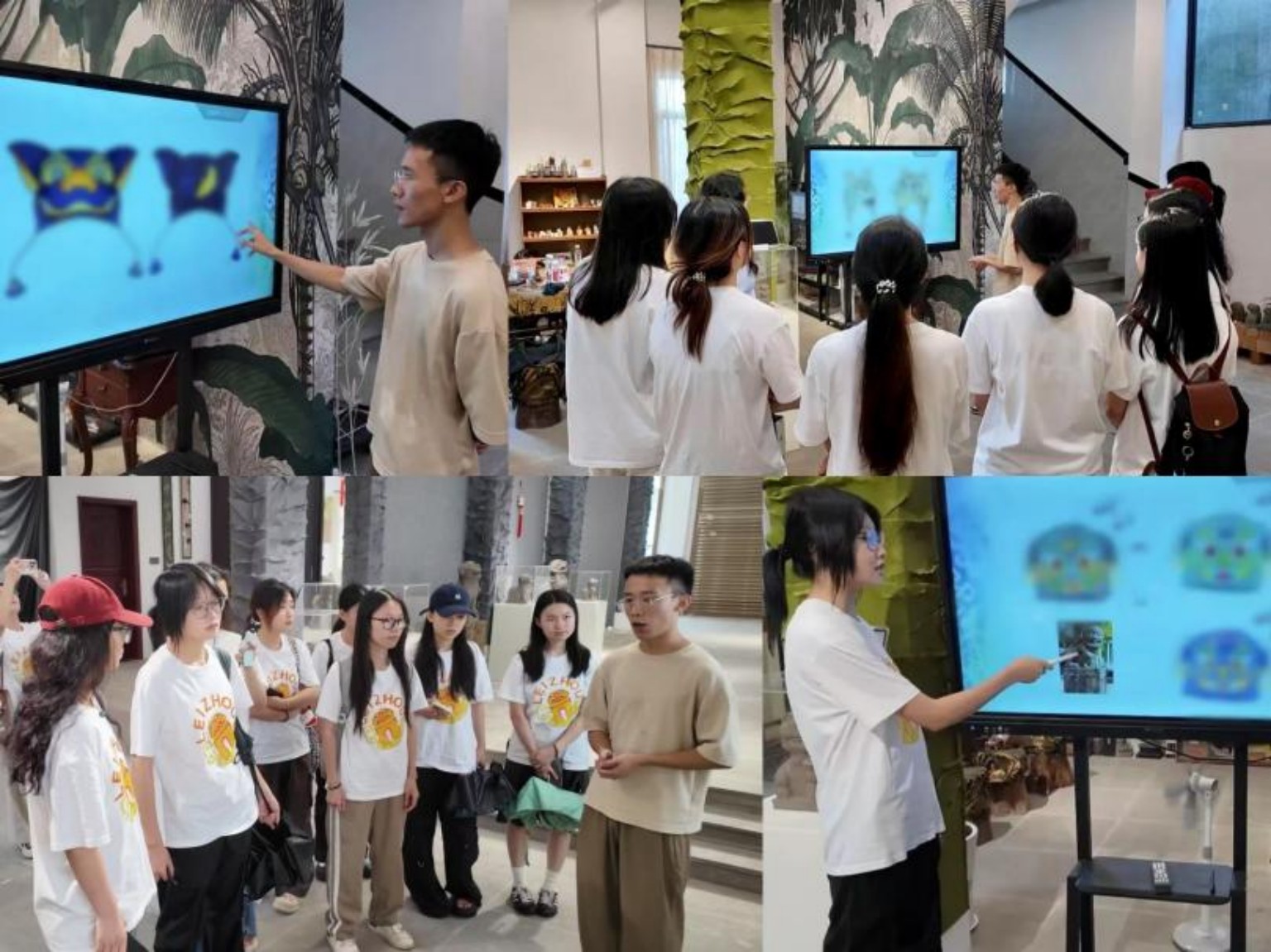 队员们怀揣着对历史的敬畏和对文化的热爱,先后走进雷州市博物馆、雷祖祠、三元塔、西湖公园等文化地标。在这些地方,她们发现大大小小的石狗遍布石桥头、祠堂口、牌坊上,一尊尊形态各异的石狗仿佛在诉说着岁月的故事。穿梭于古迹之间,她们触摸到千年非遗的温度:既了解了石狗从图腾崇拜逐步演变为守护使者的传奇历程,也感受到石狗文化与当地生活的紧密联系。