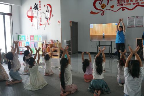 科普环节结束后,志愿者开启古典舞蹈《茉莉花》教学。从基础的站姿、手位,到《茉莉花》的经典舞步,志愿者逐一示范、分解动作。孩子们跟随节奏,认真模仿学习,尽管动作稍显稚嫩,但每一个转身、每一次抬手都充满热情。在悠扬的旋律中,孩子们感受古典舞蹈的魅力,提升艺术审美,也在舞蹈练习中增强肢体协调性与自信心。