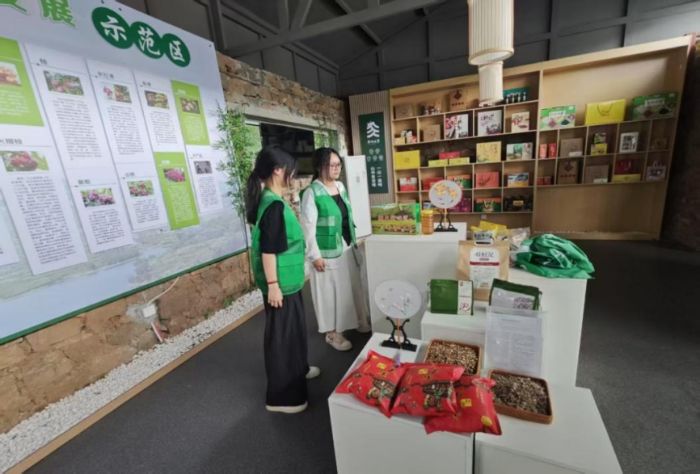 图片为实践团队员参观藤花峪特色农产品。孙文静 供图