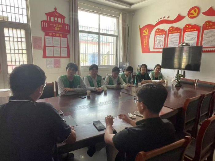 在座谈交流中,实践团一行在会议室与驻村第一书记王雪峰,村党支部书记王浩进行面对面交谈,聆听他们对于藤花峪村未来的具体规划,以及他们在实践过程中总结的经验。王雪峰书记坦言到:“如今,榴枣归乡政策成为一个政策契机,通过搭建榴枣驿站,吸引众多返乡青年扎根家乡。他们带着前沿理念与创新思维,投身藤花峪乡村振兴道路中。”