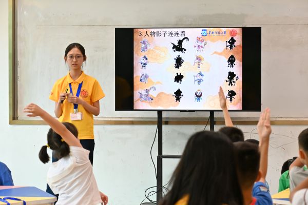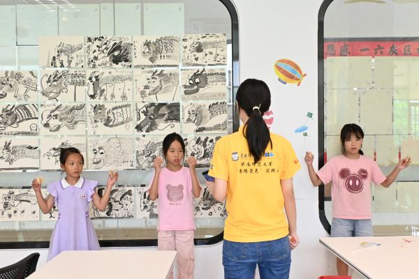 面对小朋友们“非遗是什么”的好奇询问,实践团成员精心组织了国家非遗科普课程,通过牛郎织女传说、古琴艺术和龙舞表演等生动案例,带领孩子们认识非遗。课堂上,孩子们积极互动、踊跃抢答,在实践团成员寓教于乐的方式中领略非遗的魅力。