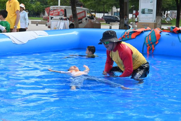 夏令营不仅关注文化传承,更注重青少年健康成长,开展了全面的“智防溺水安全教育”。专业教练现场演示防溺水"叫、伸、抛、救"四步救援法,并指导学生们分组练习救生绳使用技巧,切实提升应急避险能力。