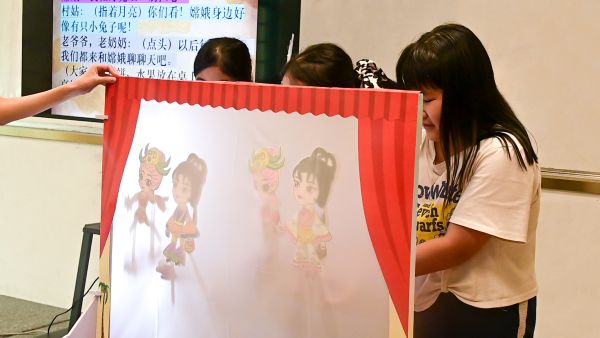 图10:小朋友们用自己制作的皮影戏表演