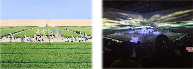 图 7 队员们与佛像合影 图 8 队员们在“官渡之战”场景复原区前驻足