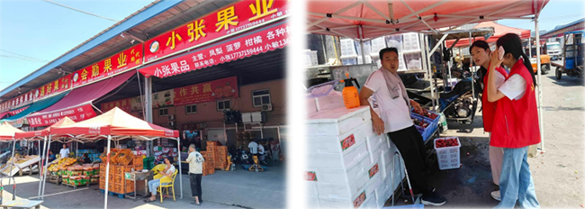 离开工业园后,队员们前往万邦农贸市场。作为全国知名的农产品物流枢纽,市场内各类果蔬按品类分区陈列,冷链运输车在装卸区有序停靠。队员们跟随商户的配送路线,记录从产地到摊位的流转流程:本地农户清晨采摘的葡萄经分拣、装箱后,通过专用通道直接进入交易区,最快3小时就能发往外地。市场内的智能显示屏实时更新着交易量、价格波动等数据,队员们驻足观察并统计了中牟本地农产品的占比情况,发现姚家镇的葡萄、草莓,刁家乡的蔬菜等本地品类占据了20%的交易份额。