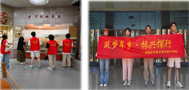 乡村振兴浪潮翻涌,青春探行脚步不停。为深度聚焦乡村振兴“产业、文化、生态、生活”四大维度,解码中牟发展密码,在周博老师的指导下,来自郑州大学商学院的程靖祎、张子茹、高可欣、张海燕、王科淞、杨万里、李尧和胡锦捷组成的“乡韵小分队”于2025年7月7日奔赴郑州中牟县,开启“筑梦牟乡·振兴探行”实践之旅。从产业地标汽车工业园、万邦农贸市场、方特文化乐园,到文化载体中牟博物馆、官渡博物馆;从生态名片牟山湿地公园、黄河滩区,到生活窗口县城街道、姚家镇老八庄村,全方位挖掘中牟产业活力、文化底蕴、生态魅力与民生温度,以青春视角记录振兴实践,用调研行动赋能乡村发展,让“四兴”探索成为助力牟乡腾飞的青春注脚。