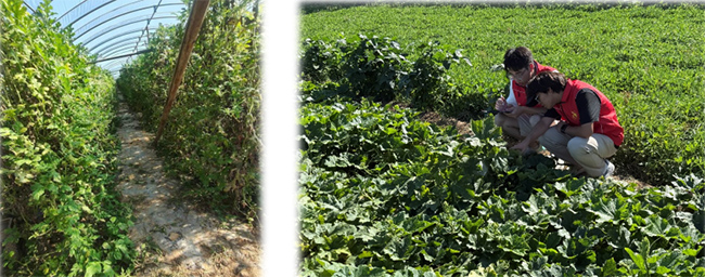 图 20 队员们参观蔬菜大棚 图 21 队员们下地观察农作物生长情况