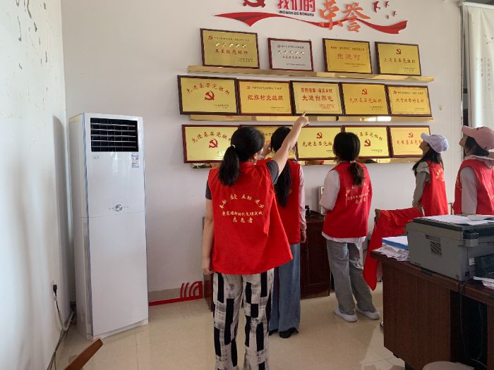 (图为广西民族师范学院云帆实践队在参观石路村荣誉,摄影:韦翠毓)