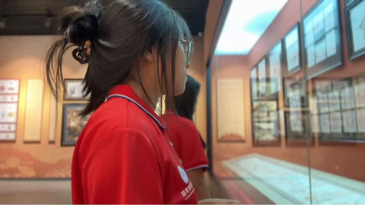 在剪纸专题展区,一件件精美的展品令队员们驻足流连。讲解员介绍到,蔚县剪纸以阴刻为主的彩色剪纸独树一帜,从最初的窗花装饰发展到承载传统文化的重要载体,从而将蔚县剪纸推向一个新的高度,作为国家级非物质文化遗产走向世界。队员们认真记录着每个细节,不时与讲解员深入交流。穿越一个个展厅,队员们深刻感受到:这些历经沧桑的文物不仅是蔚县历史的见证者,更是中华文明绵延不断的生动注脚。
