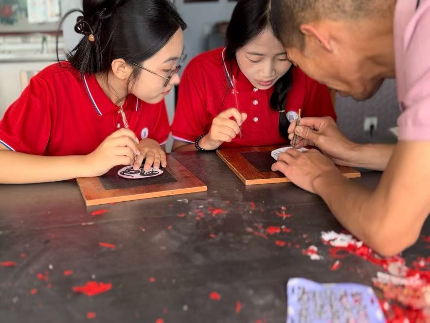 中国剪纸第一村:刀尖上的千年传承。实践团队首站来到“中国剪纸第一村”南张庄村。一进村,浓郁的剪纸艺术氛围便扑面而来。街边店铺陈列着琳琅满目的剪纸作品,单色、彩色、单彩复式、多层套色等各类剪纸争奇斗艳,花鸟鱼虫、人物故事在薄纸上栩栩如生。非遗传承人现场展示了“阴刻为主、阳刻为辅、彩色点染”的高超技艺,只见刻刀翻飞间,一幅精美的花鸟图跃然纸上。